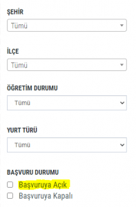 قم باختيار Başvuruya açık لمعرفة المساكن المتاحة للتسجيل ثم التواصل معهم عبر الأرقام الموضحة.